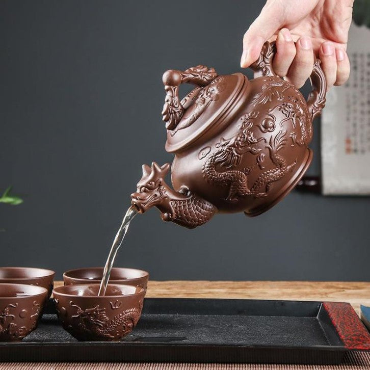 Dragon tea sets made from natural clay are associated with traditional tea-drinking cultures and rituals. Natural Clay has the ability to enhance the flavor of the tea.